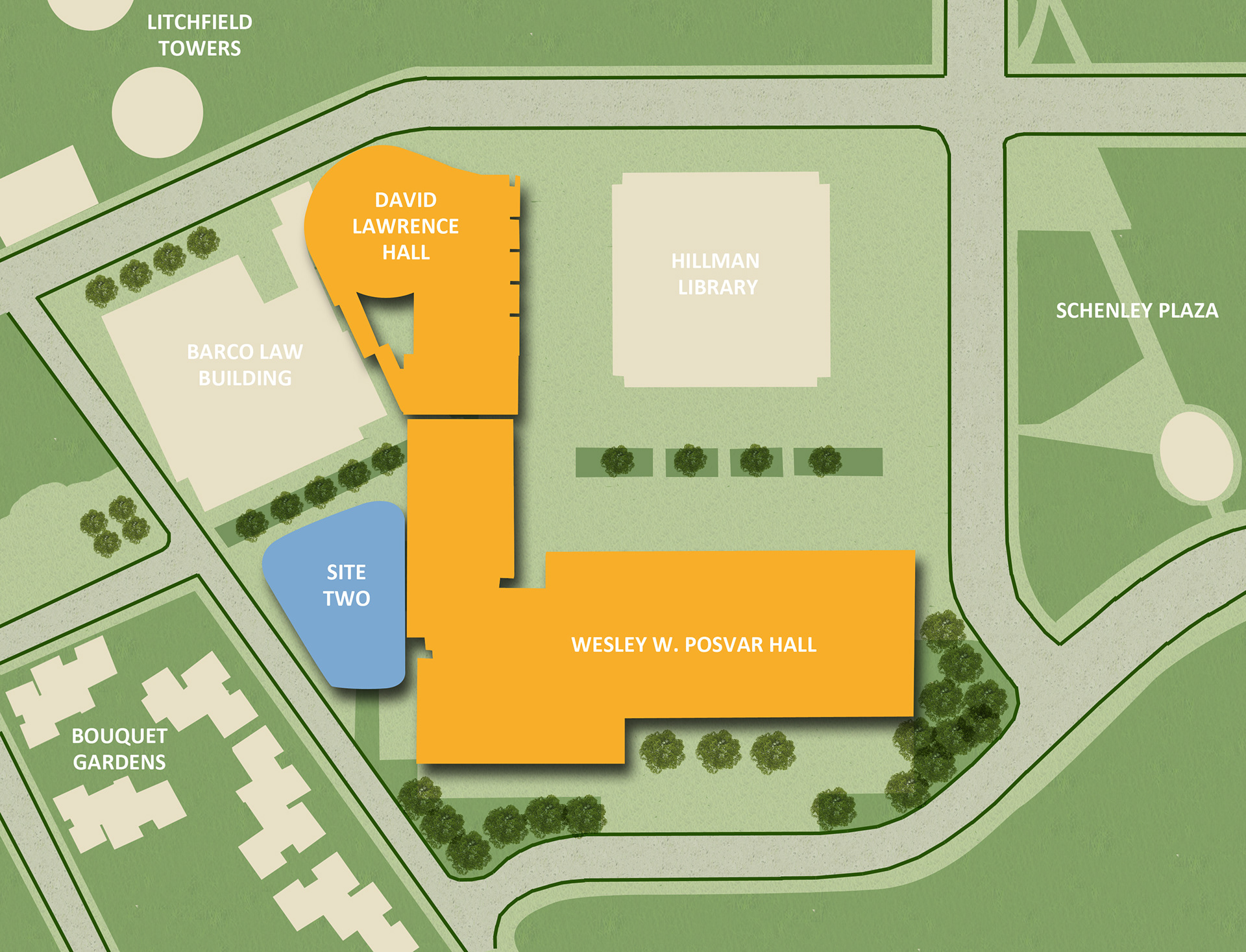 New base maps for the University of Pittsburgh satellite campuses, along with construction plans for additions to the University of Pittsburgh's main campus in Oakland. Created using Adobe CS5.